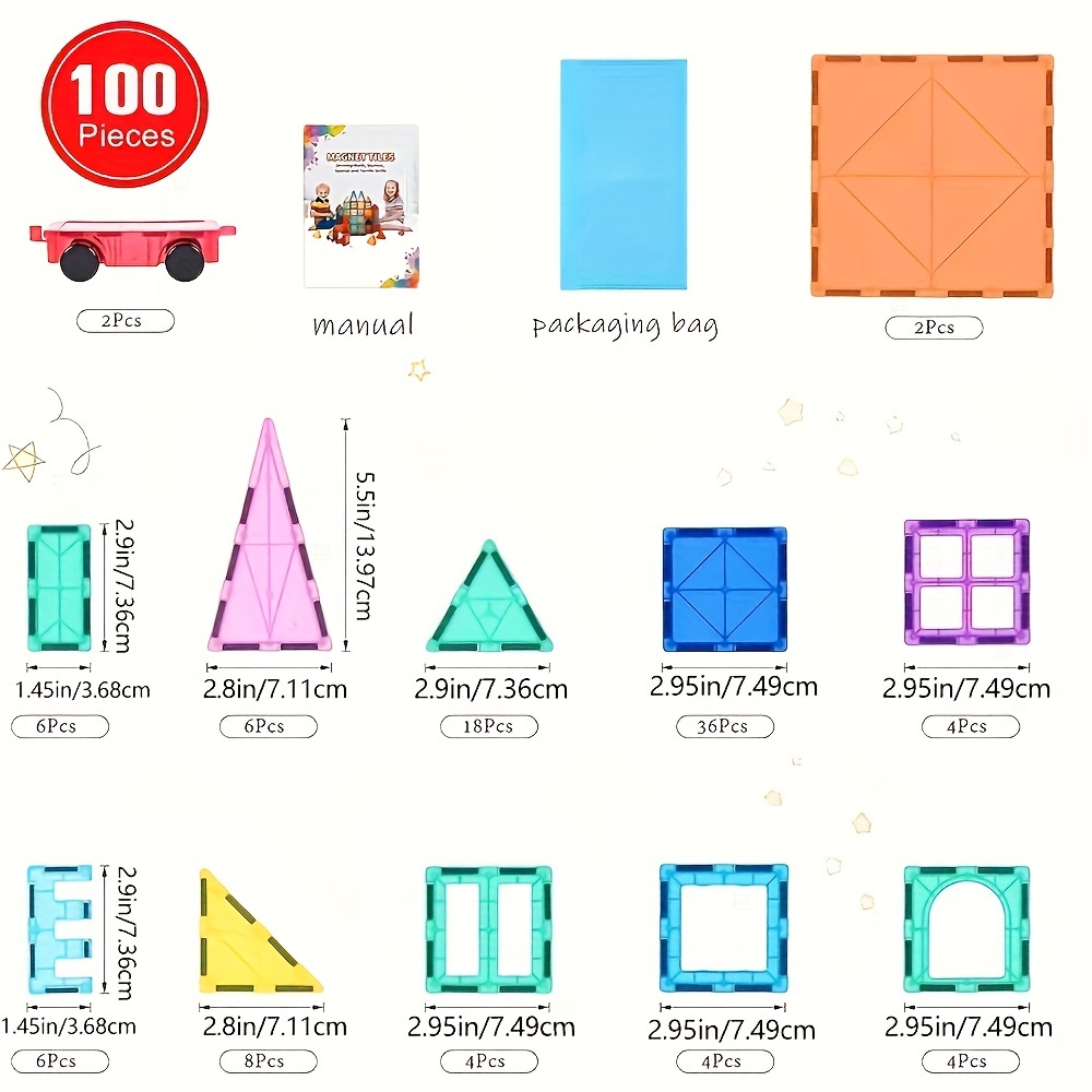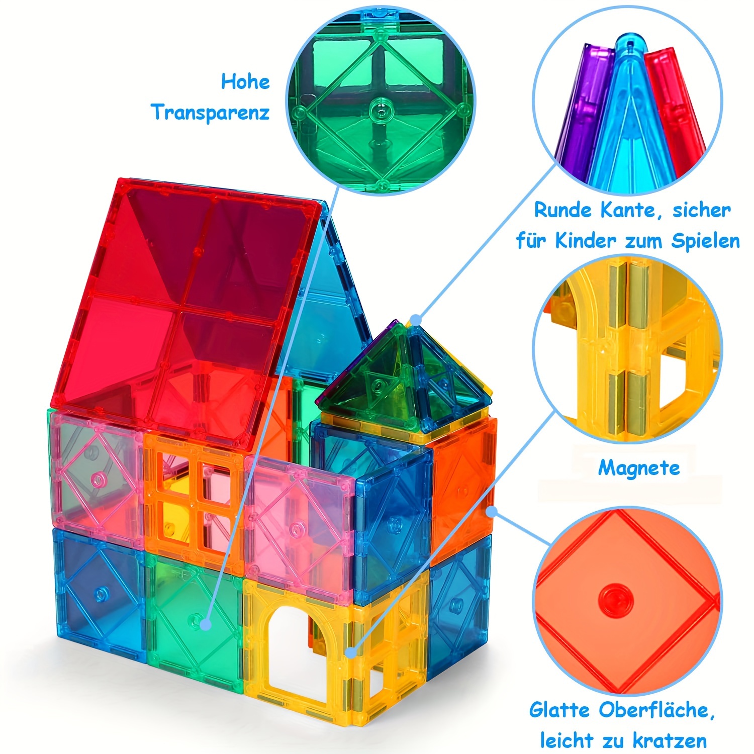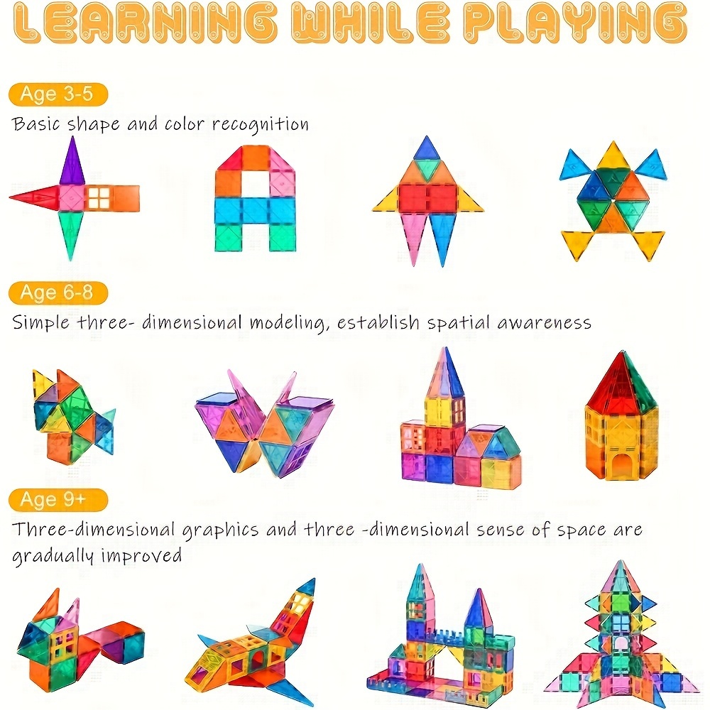 Libérez la créativité de votre enfant avec ce **set de 48 blocs de construction magnétiques** ! Ces tuiles colorées et transparentes s’assemblent comme par magie grâce à leurs bords magnétiques puissants, permettant de construire des structures **2D plates ou des formes 3D complexes** : maisons, châteaux, véhicules, et bien plus encore. C’est l’outil parfait pour initier les jeunes esprits aux concepts **STEAM** (Science, Technologie, Ingénierie, Art, Mathématiques) de manière ludique et intuitive.