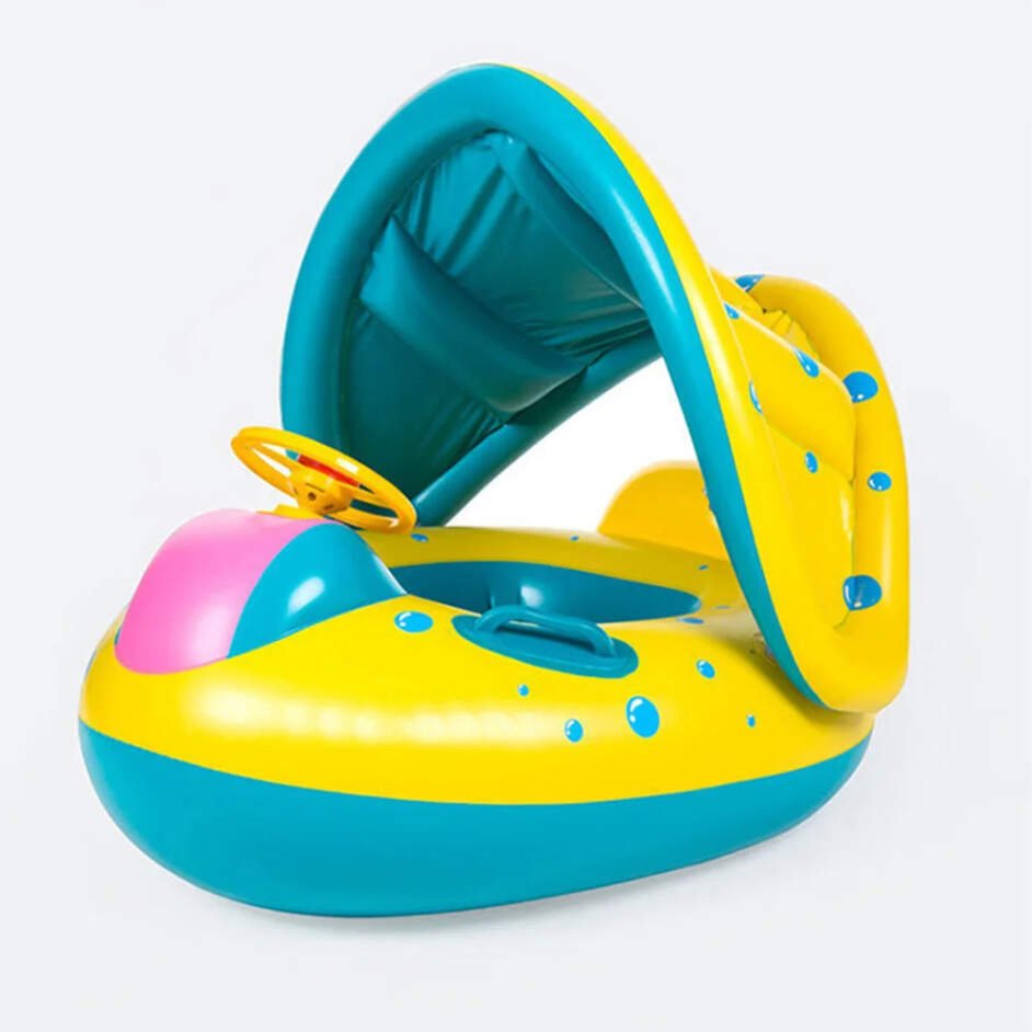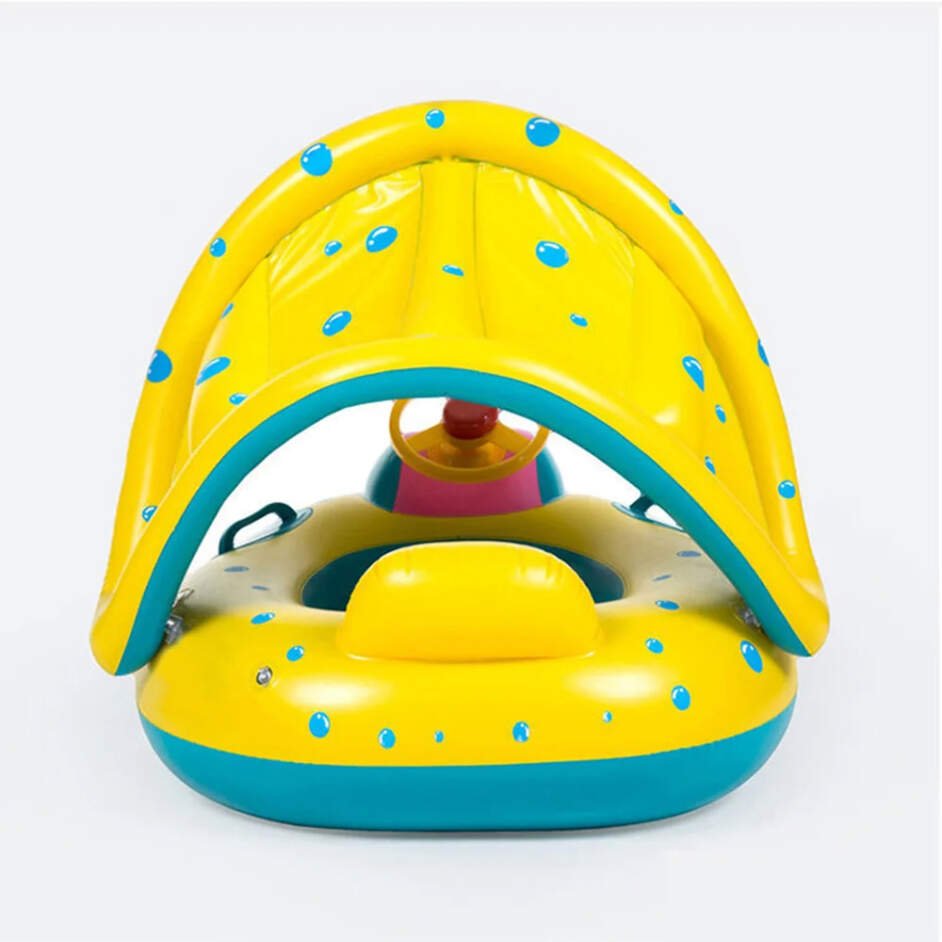 Mots-clés : bouée bébé, gonflable, pare-soleil, volant, interactif, sécurité, piscine, été, enfant, jouet aquatique.