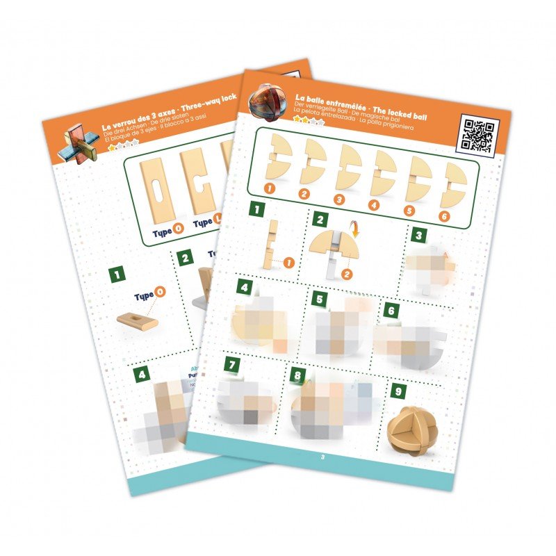 Ce coffret contient 3 modèles de casse-têtes traditionnels revisités pour apprendre à démonter et remonter : les trois axes, les neuf maillons et la balle entremêlée. Il n’y a qu’une seule façon de les déverrouiller… Défi-toi ou défie tes amis et sois le plus rapide ! Solutions vidéo incluses.