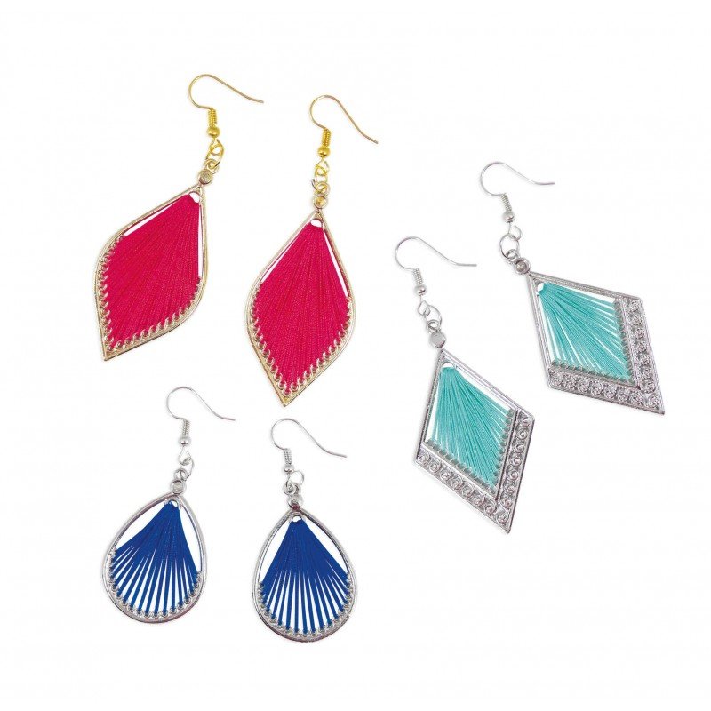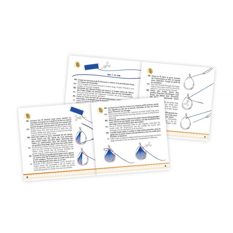 Avec ce coffret, l’enfant tisse des fils colorés sur des intercalaires pour réaliser 3 modèles de bijoux (boucles d’oreilles) selon son style. Idéal dès 8 ans.