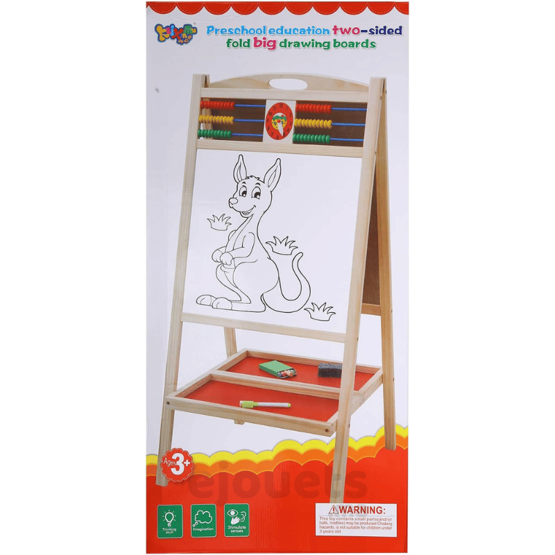 🎨 سبّورة تعليمية خشبية للأطفال – وجهين مع رف وعداد | 90CM