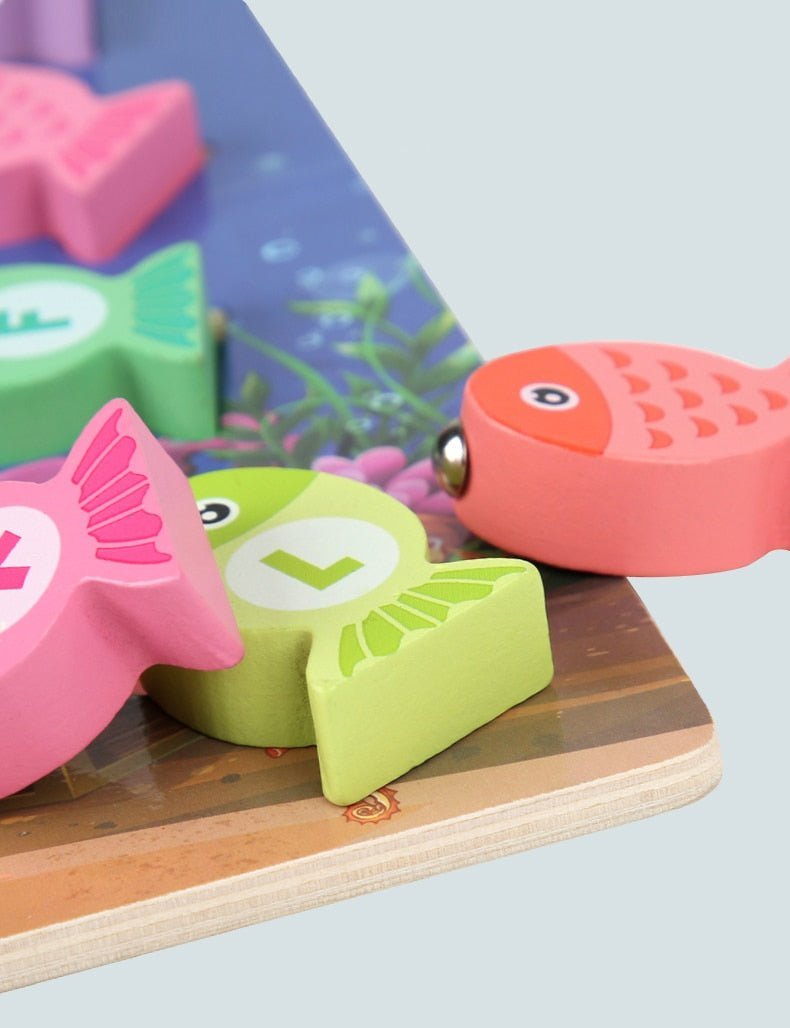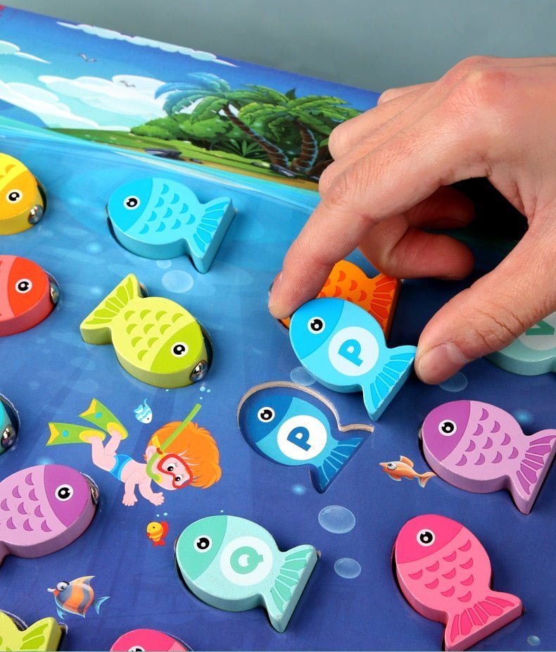 L’enfant apprend l’alphabet sans s’en rendre compte tout en développant sa dextérité grâce à la pêche magnétique.