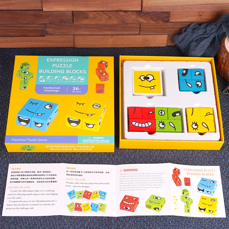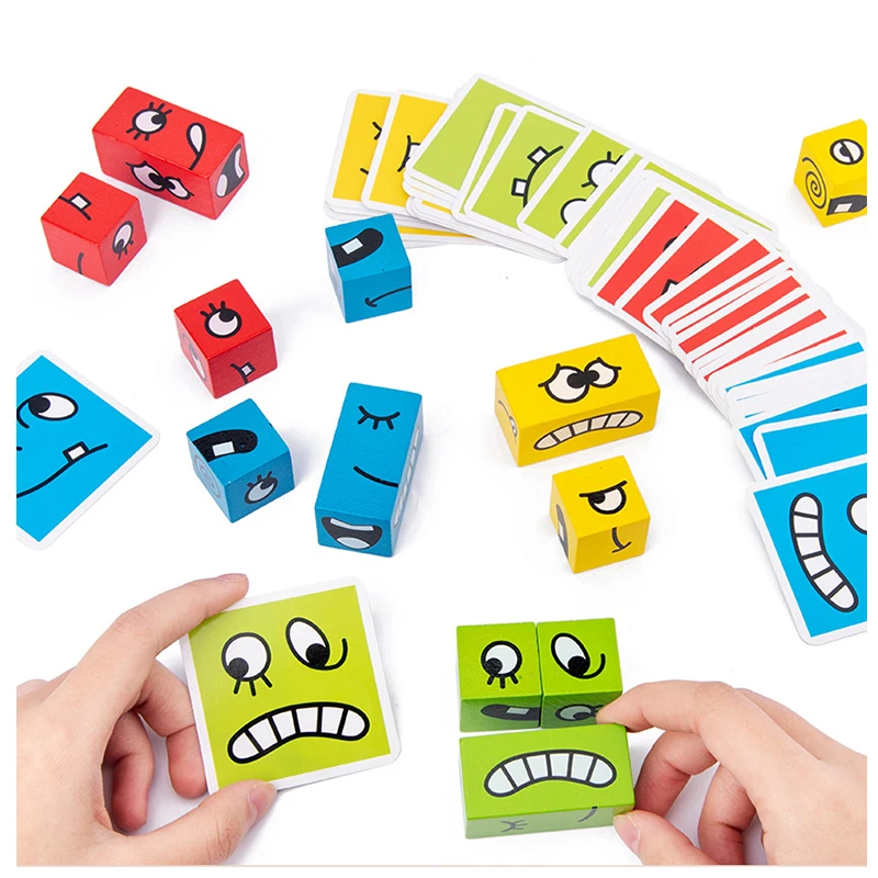 À l’aide de cubes colorés en bois, votre enfant apprend à reconnaître les émotions (joie, colère, peur, surprise…) tout en s’amusant 🎲.