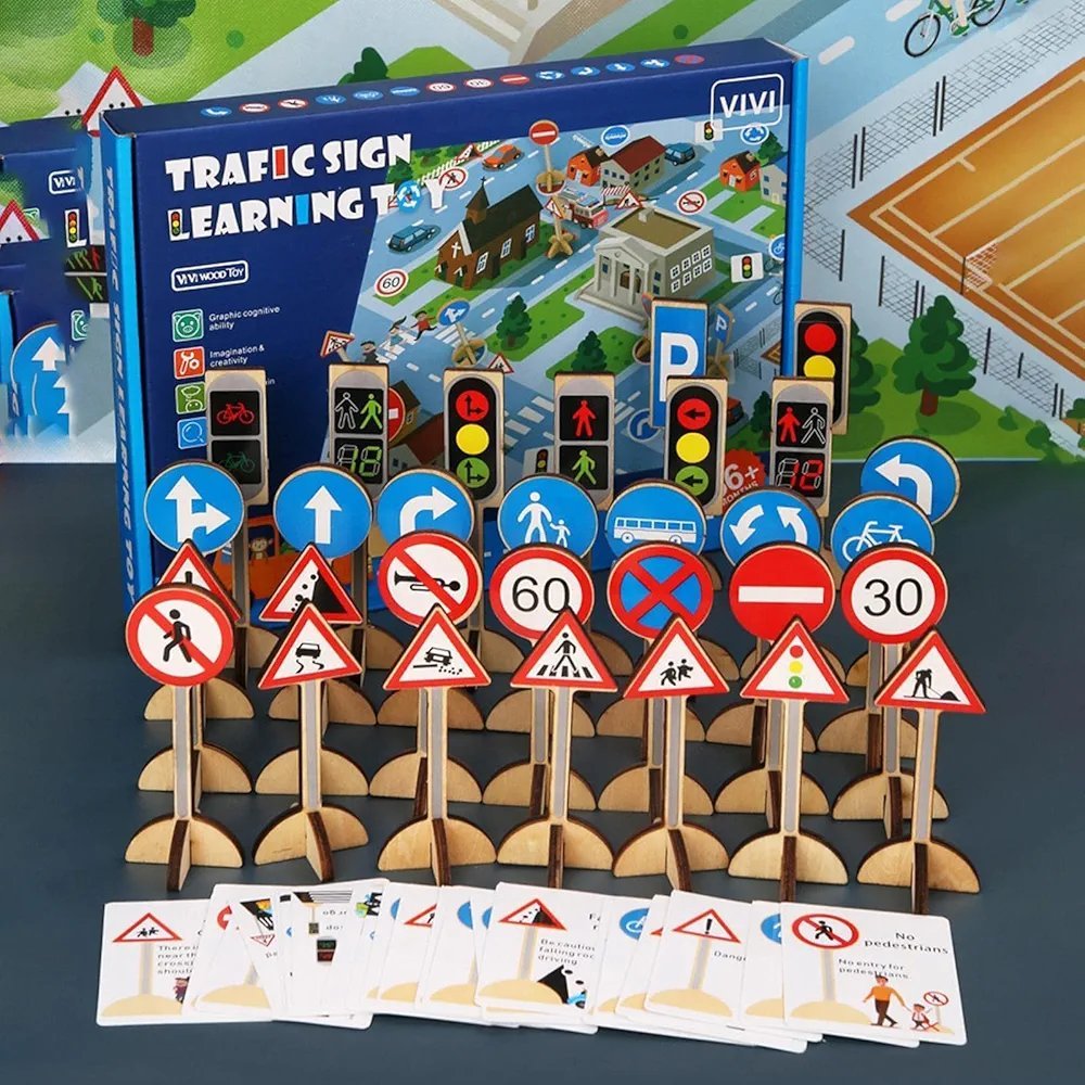 Ce kit permet aux enfants de comprendre les panneaux de signalisation, feux tricolores,