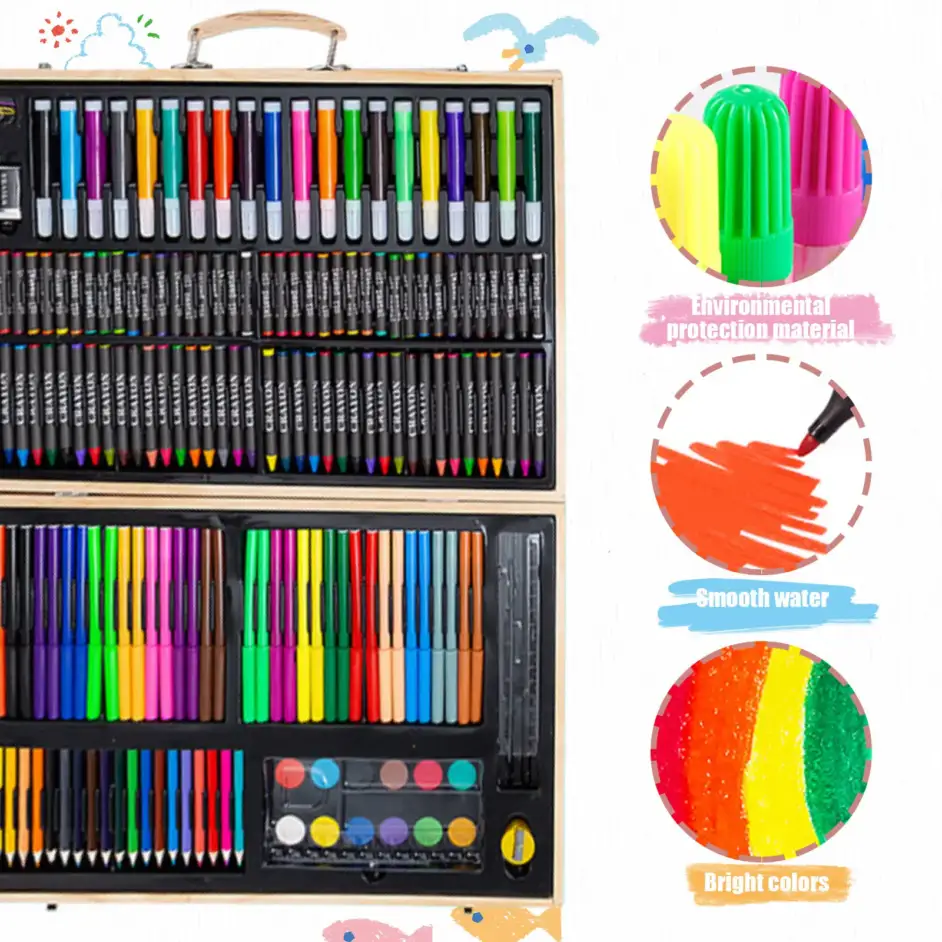 Contenu riche:L’ensemble comprend 20 crayons de couleur, 36 stylos à aquarelle fine, 20 stylos à aquarelle brute, 40 crayons, 40 pastels à l’huile, 12 poudres pressées de couleur, 1 taille-crayon, 1 règle, 1 stylo de traçage, 1 crayon HB, 1 gomme, 1 palette, 1 bouteille de colle, 5 trombones.