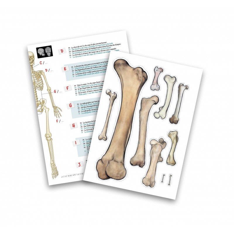 Livré avec une base de support, 10 radiographies (X-rays), et des étiquettes autocollantes pour nommer les os.