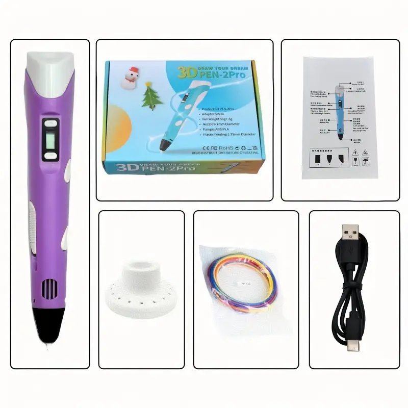 • 1 stylo 3D Pen-2 Pro (couleur aléatoire : bleu ou violet)