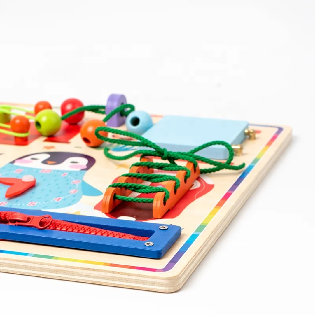Stimulez la curiosité et la motricité de votre enfant avec ce tableau d’éveil Montessori en bois !