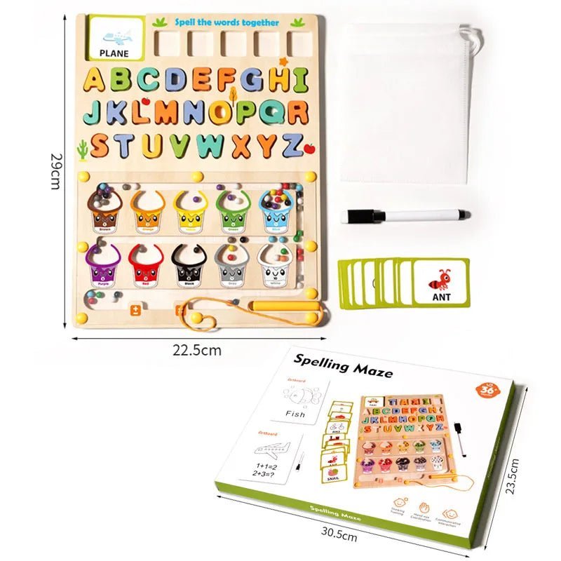 apprentissage des lettres, tri des couleurs et jeu de labyrinthe magnétique.