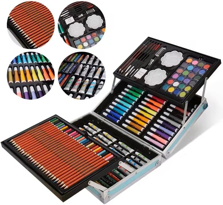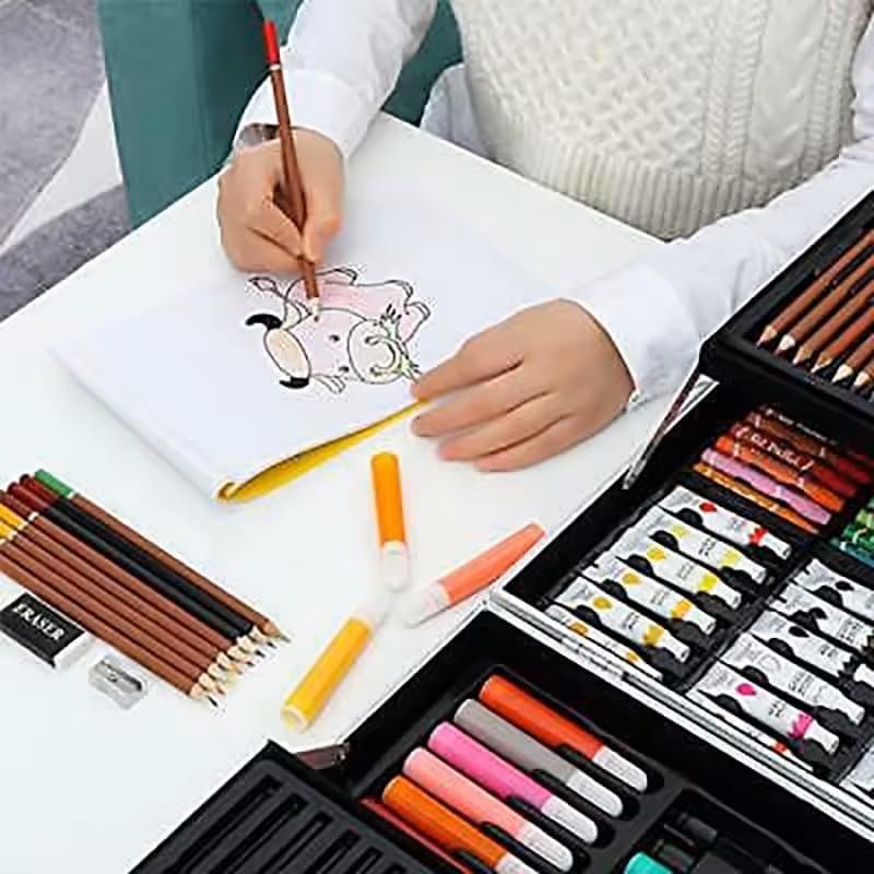 Tout-en-un, elle contient crayons, feutres, peintures, pinceaux et plus encore —